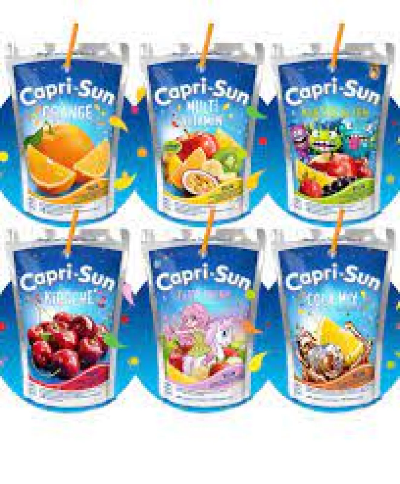 Capri-Sun products: Orange, Church, Jungle Drink, Multi