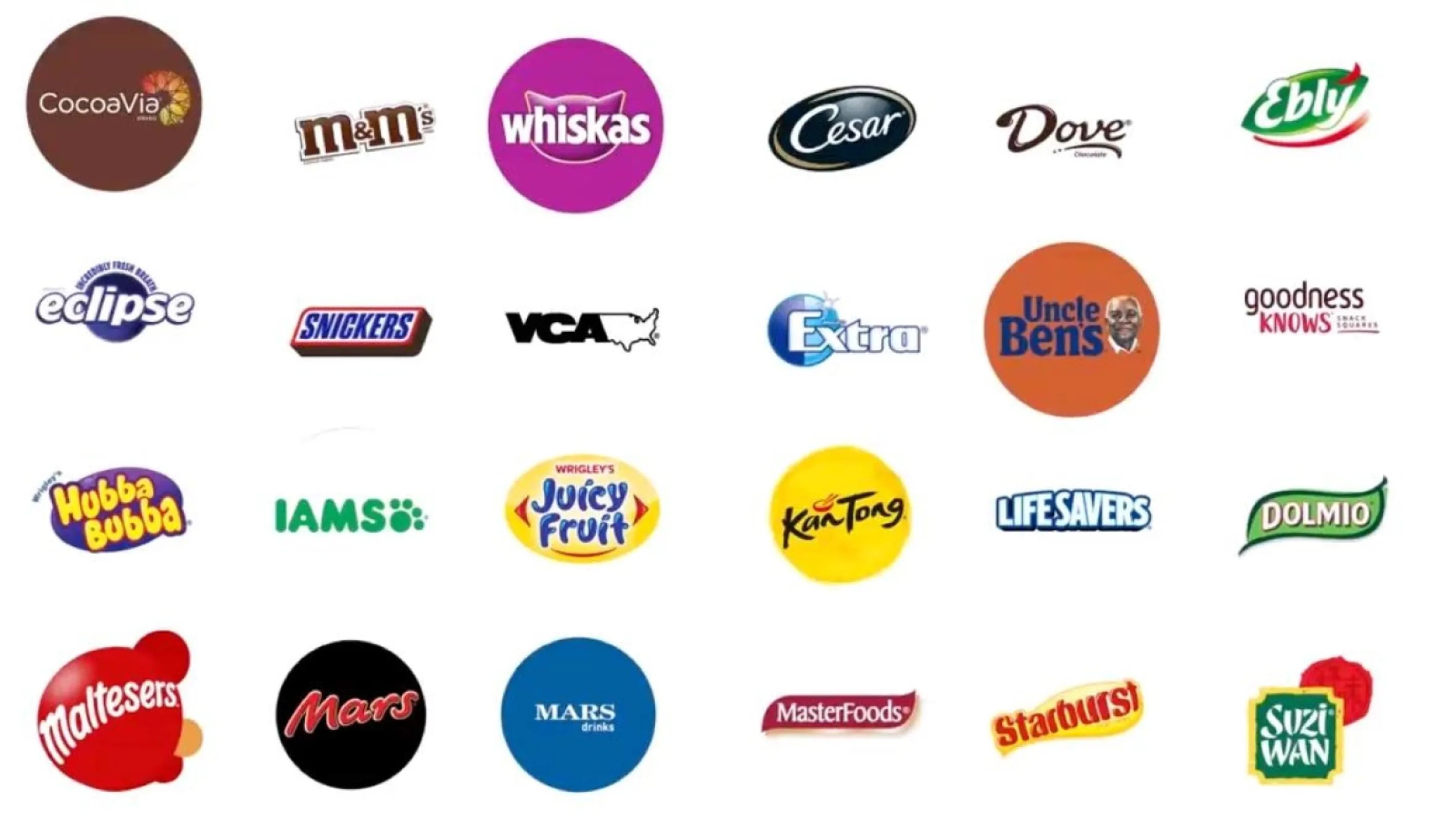 Mars products: Twix, Snickers, m&m, Mars