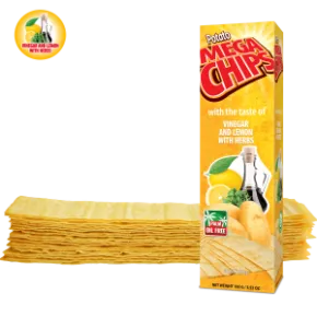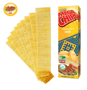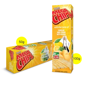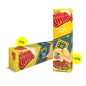 Mega Chips is a unique innovative crispy potato chips in a new long shape made from the best quality potatoes.